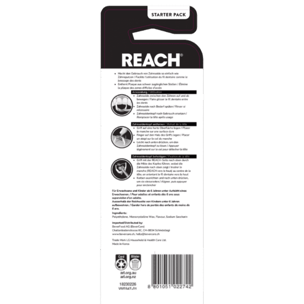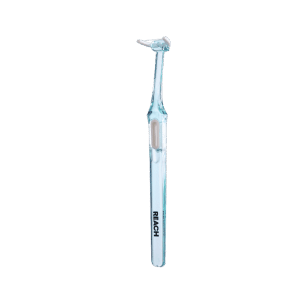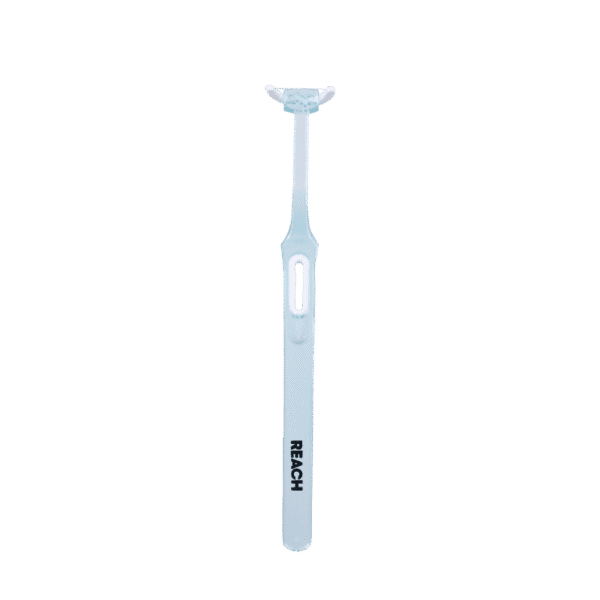 1. Insert the handle through the center of the head with the REACH side up and the floss facing up.