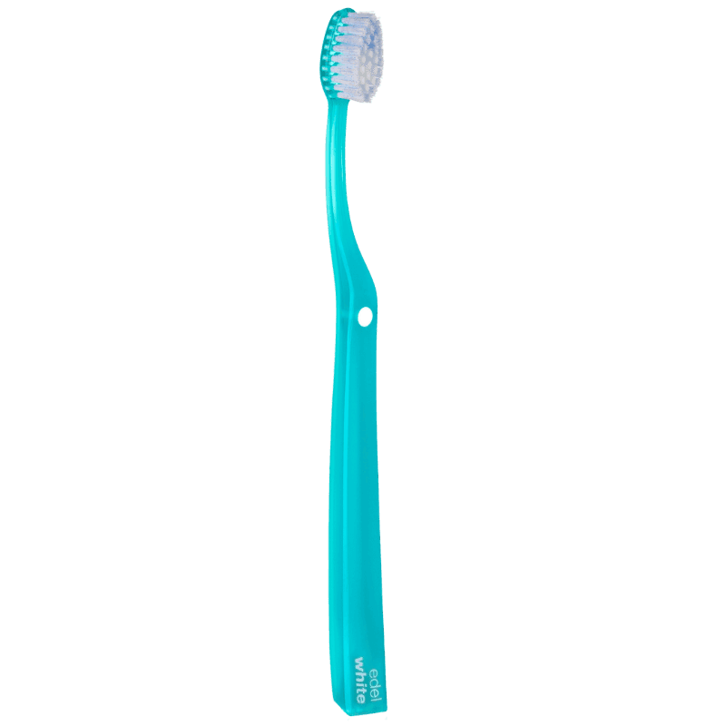 The Stain Eraser Brush removes stains as effectively as an eraser. Tiny rubber balls are embedded in the bristles to gently rub away stains – ideal for occasional use when drinking coffee, tea, red wine or tobacco. It cleans 37% more effectively than other tested toothbrushes* and is gentle on teeth and gums thanks to its flexible handle. For optimum results, we recommend combining it with edel+white anti-plaque whitening toothpaste.