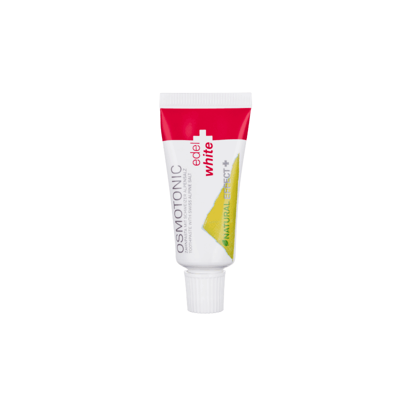 Nous avons utilisé le principe de l’osmose pour formuler Osmotonic, un dentifrice osmotique qui aide à maintenir l’équilibre buccal, et donc la santé buccale. Les cristaux de sel finement broyés produisent une forte concentration de substances dissoutes. Cela permet à l’eau présente sous la membrane cellulaire dans la gencive enflammée de quitter les cellules afin d’équilibrer les concentrations de part et d’autre de la membrane cellulaire de la gencive. Cela permet au réseau de cellules de se régénérer plus rapidement.