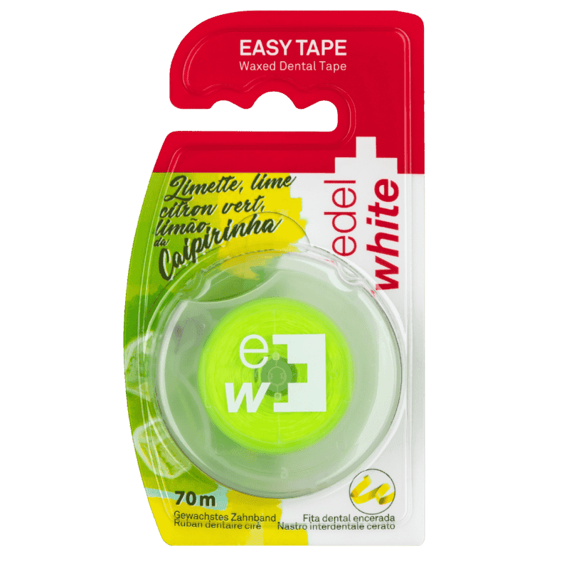 Grâce à sa forme plate et à son revêtement ciré, Easy Tape glisse facilement dans les espaces interdentaires les plus étroits et convient particulièrement bien aux débutants en matière de fil dentaire. Easy Tape est plus large qu’un fil dentaire moyen, ce qui vous permet de passer moins de temps à vous brosser les dents, car Easy Tape est capable de brosser plus de la surface d’une dent en un seul passage. Sa forme de ruban de cire signifie également qu’il ne glisse pas et ne coupe pas les doigts.
