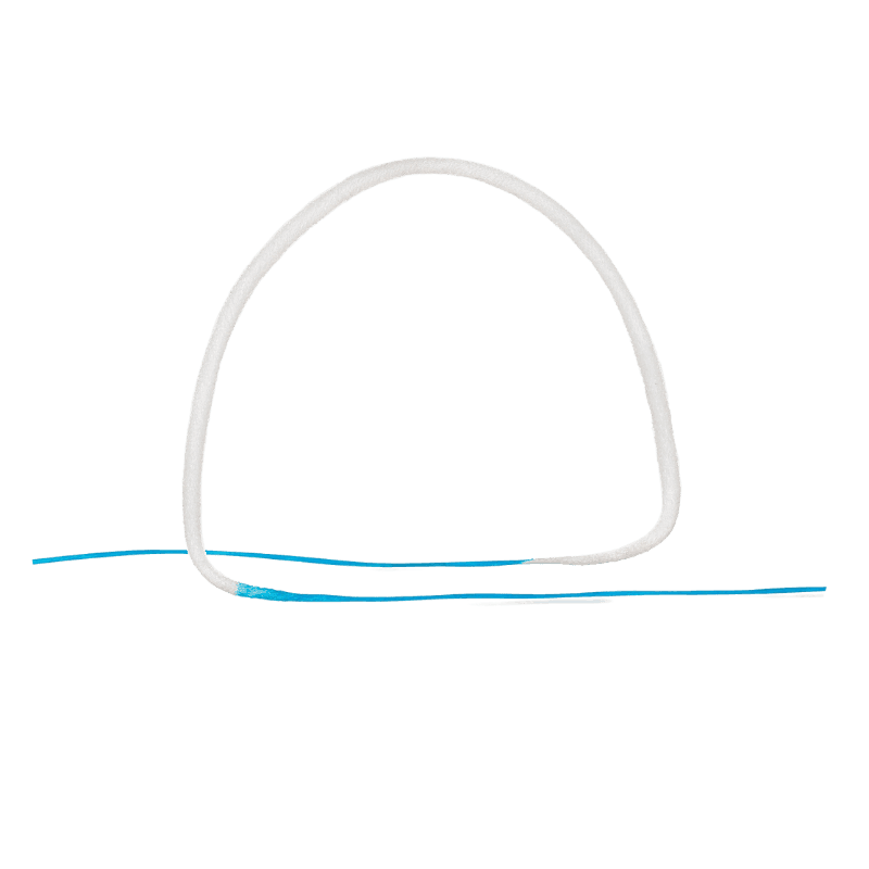 1. Enfilez l’une des extrémités renforcées autour de la base de l’implant, en l’enfilant d’un côté et en la sortant de l’autre.