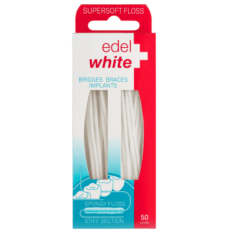 Supersoft Floss est un fil dentaire super doux pour les zones nécessitant des soins particuliers. Supersoft Floss offre un excellent nettoyage des bridges, des implants, des appareils dentaires et des espaces interdentaires larges. Les brins prédécoupés permettent d’éliminer la plaque dentaire en douceur et en profondeur.
