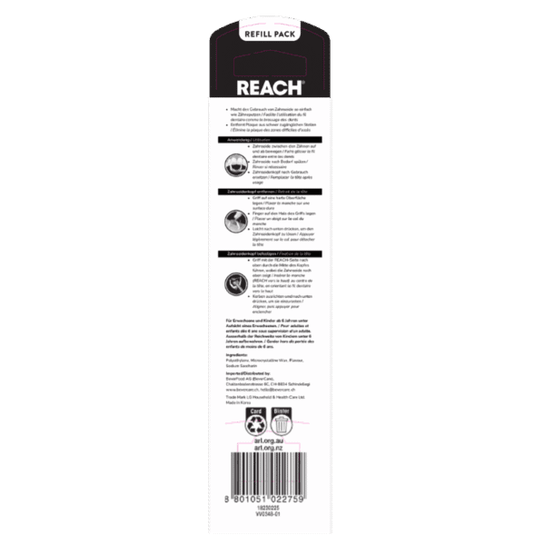 Recharge de 28 têtes de fil dentaire interchangeables One-Touch pour le REACH Access Flosser Starter Pack : facile à recharger, hygiénique et économique.