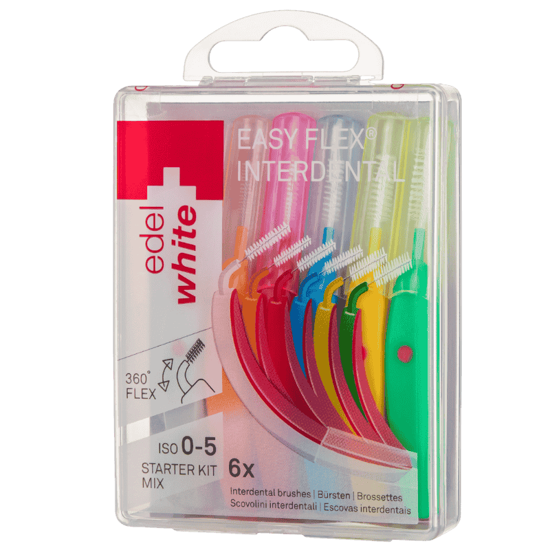 Warum eine gerade Interdentalbürste verwenden, wenn der Kiefer doch gekrümmt ist? Das war der einfache Gedanke, der die Entwicklung von EasyFlex auslöste: Eine gebogene Bürste, die sich flexibel an die Form deines Kiefers anpasst. Noch nie war die Interdentalreinigung so einfach, bequem und gründlich. Der gebogene Griff und der flexible Hals ermöglichen eine mühelose Reinigung zwischen jedem Zahn – auch zwischen den hinteren Backenzähnen.
