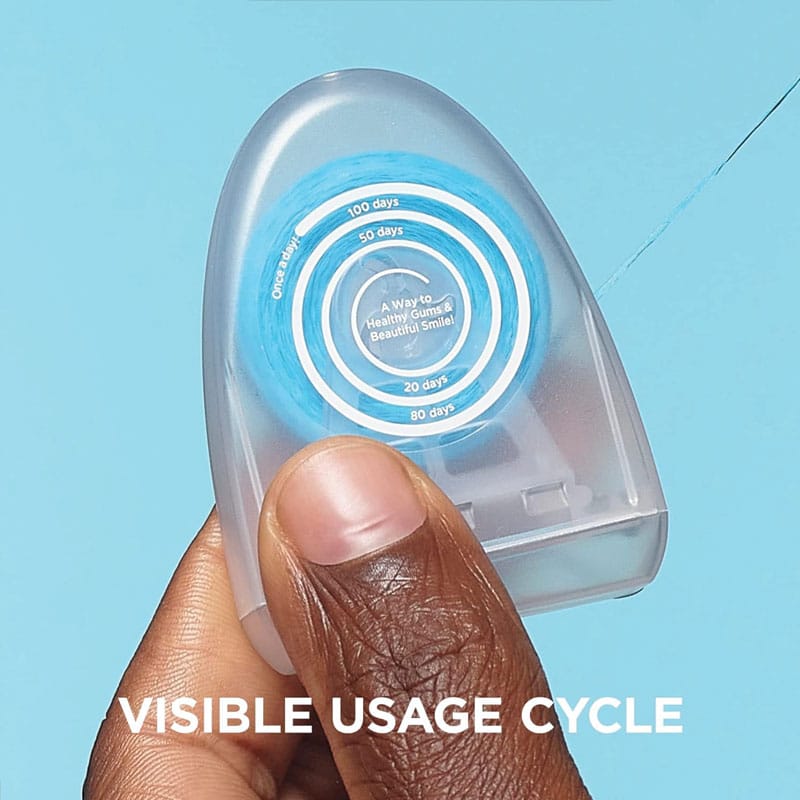 – Mit Nutzungszyklusanzeige: Spender zeigt den verbleibenden Zahnseide-Vorrat